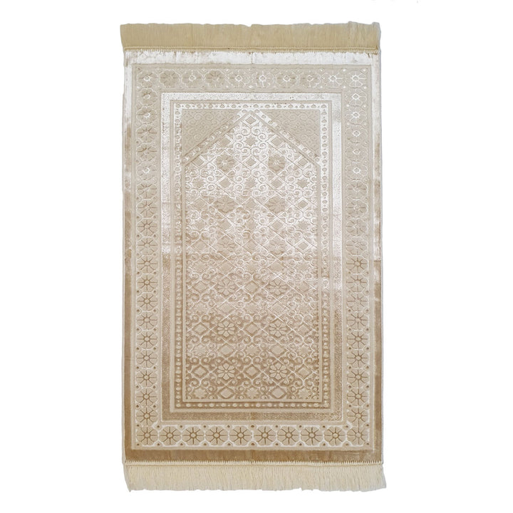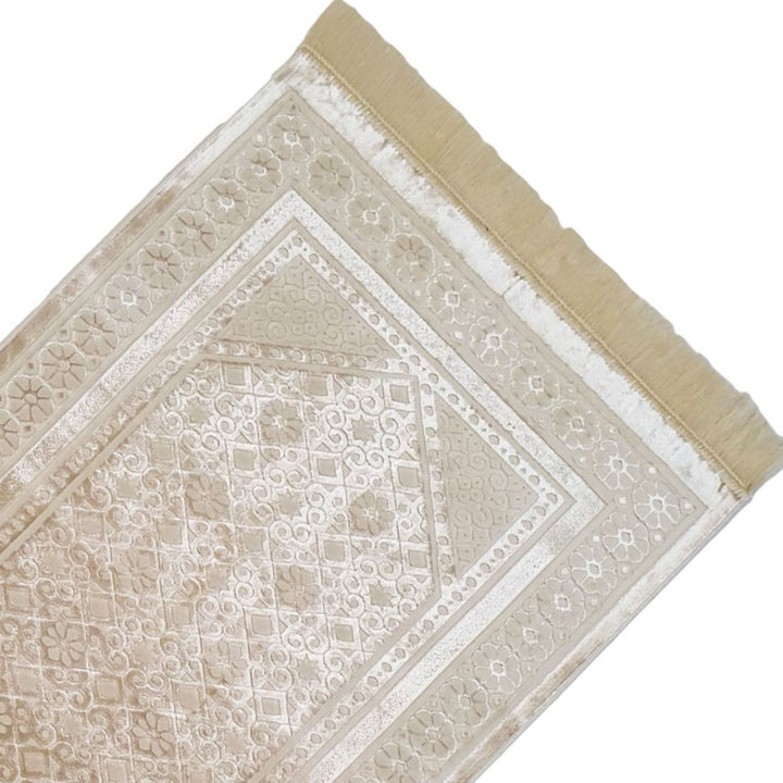 سجادة الصلاة هذه منسوجة من المخمل الناعم مع شراشيب متناغمة عالية الجودة. الوان هادئة تناسب كل الاذواق