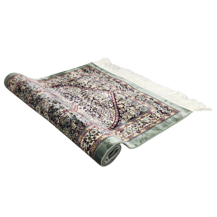 This elegant mat features an ultra-soft, high-density woven surface with a velvet-like plush touch. Designed with rich traditional Islamic arch patterns, it offers a premium heavyweight feel—perfect for both home and mosque use.