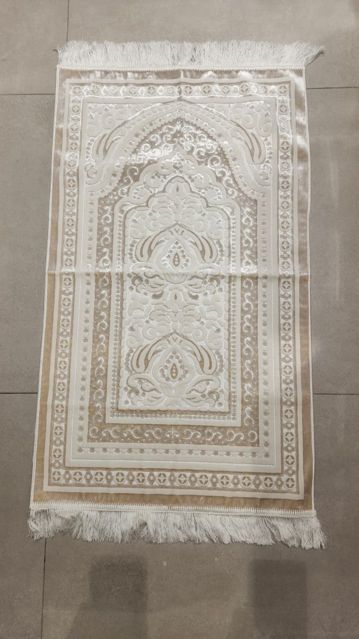 LUXURIOUS SOFT VELVET PRAYING MAT -ZUMORUD (IVORY)