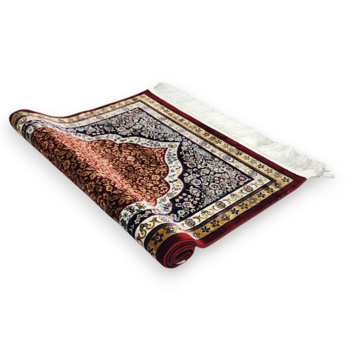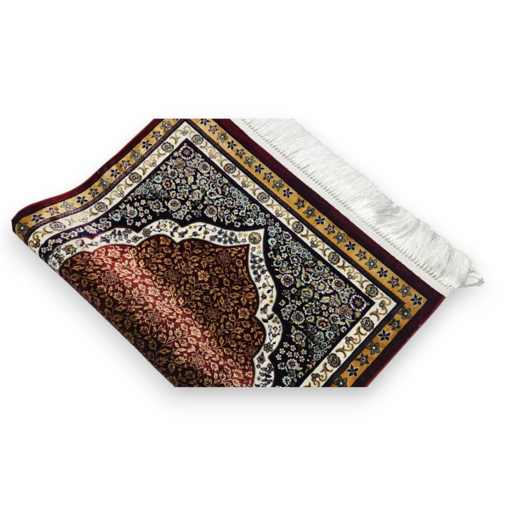 This elegant mat features an ultra-soft, high-density woven surface with a velvet-like plush touch. Designed with rich traditional Islamic arch patterns, it offers a premium heavyweight feel—perfect for both home and mosque use.